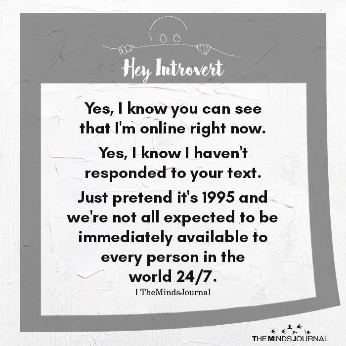 Yes, I know you can see that I’m online right now. Yes, I know I haven’t responded to your text. Just pretend it’s 1995 and we’re not all expected to be immediately available to every person in the world 24/7.