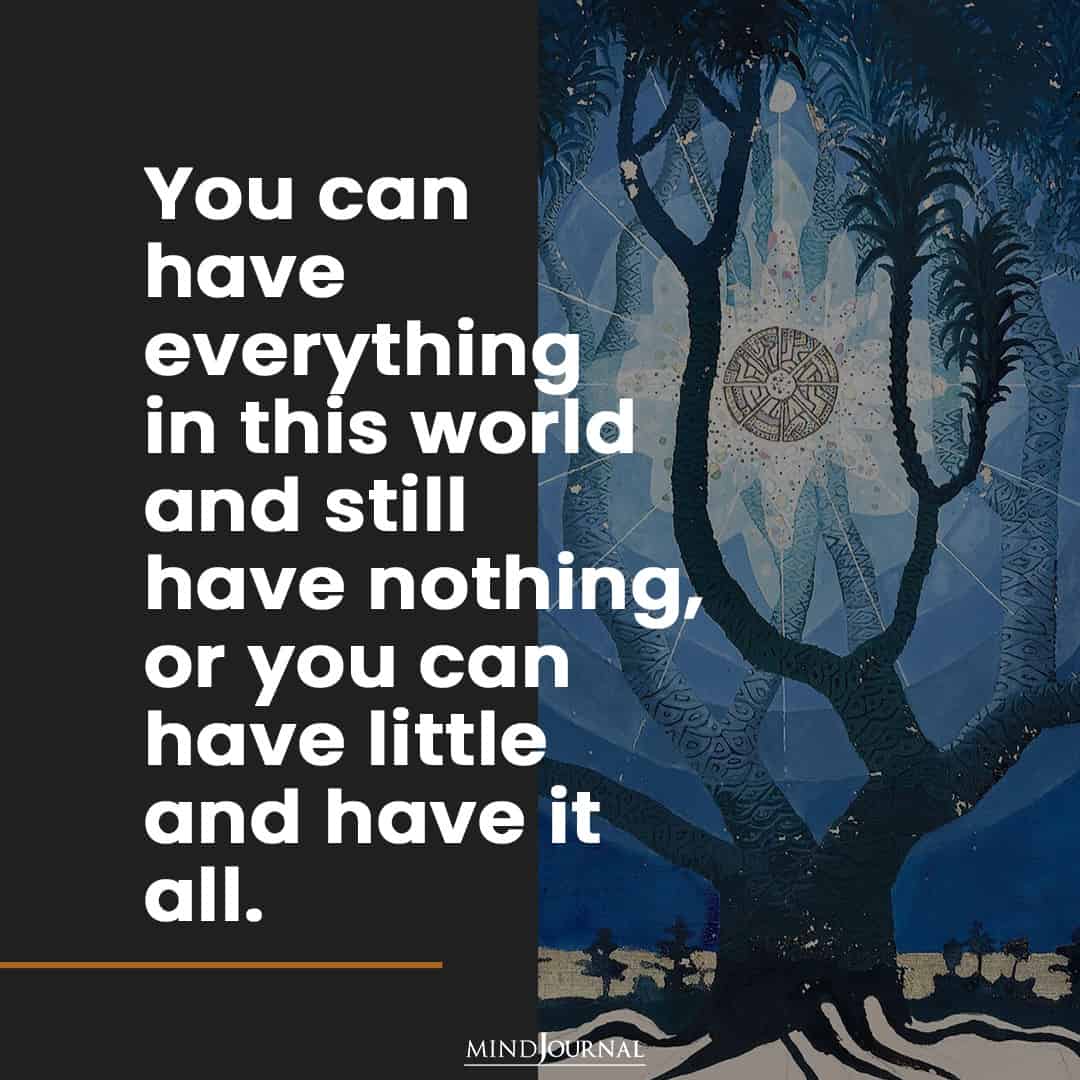 You can have everything in this world and still have nothing, or you can have little and have it all.