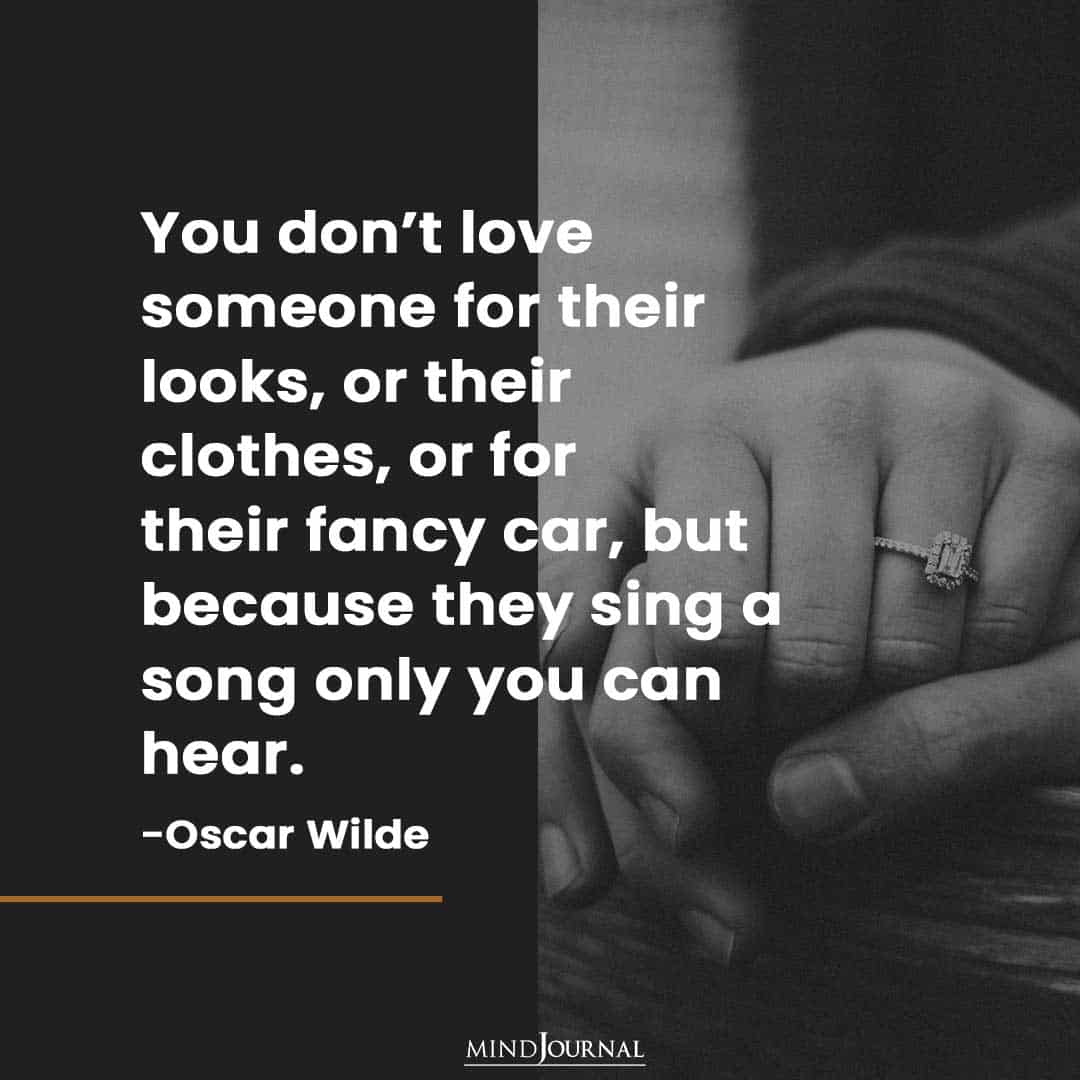 You don’t love someone for their looks, or their clothes, or for their fancy car, but because they sing song only you can hear.