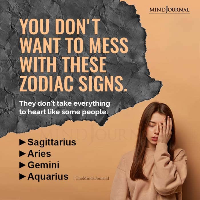 They don’t take everything to heart like some people. Sagittarius, Aries, Gemini, Aquarius