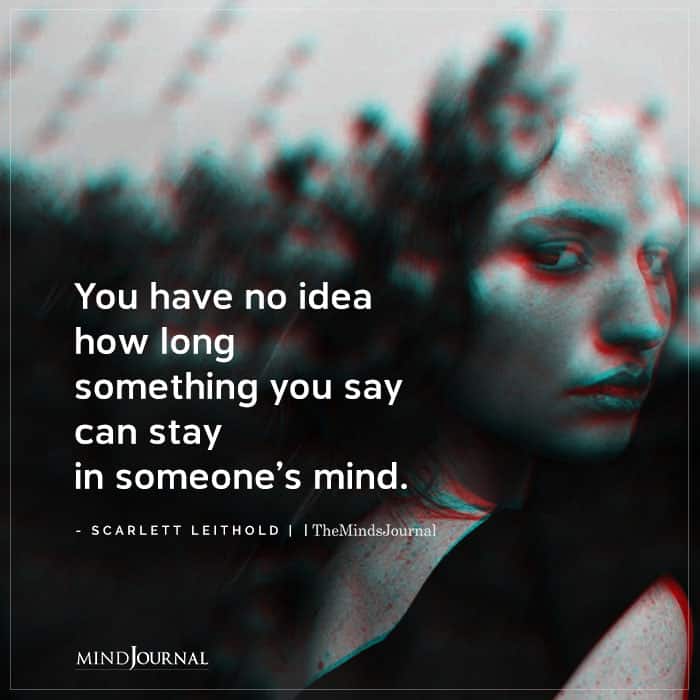 You have no idea how long something you say can stay in someone’s mind.