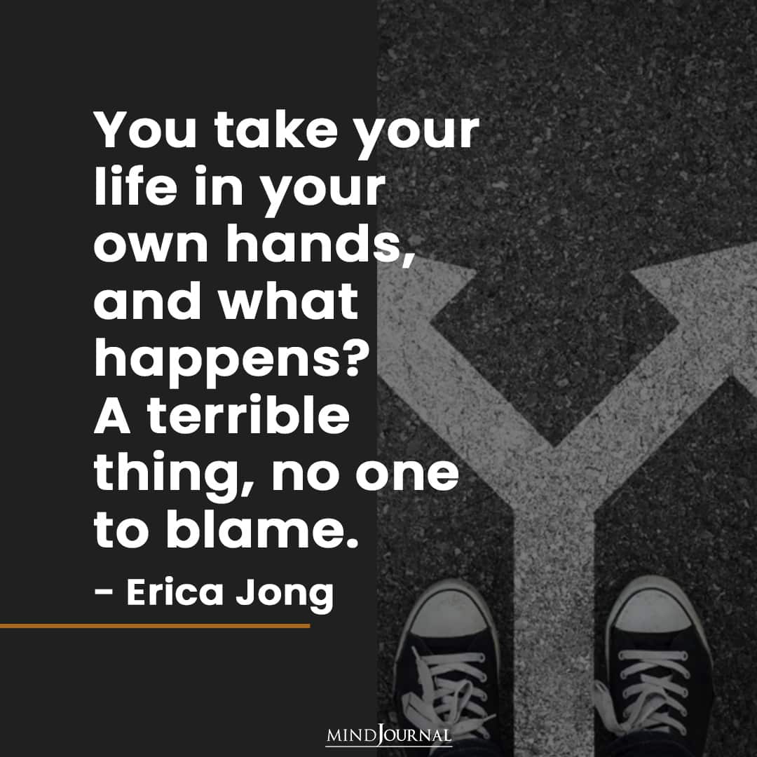 You take your life in your own hands, and what happens? A terrible thing, no one to blame.