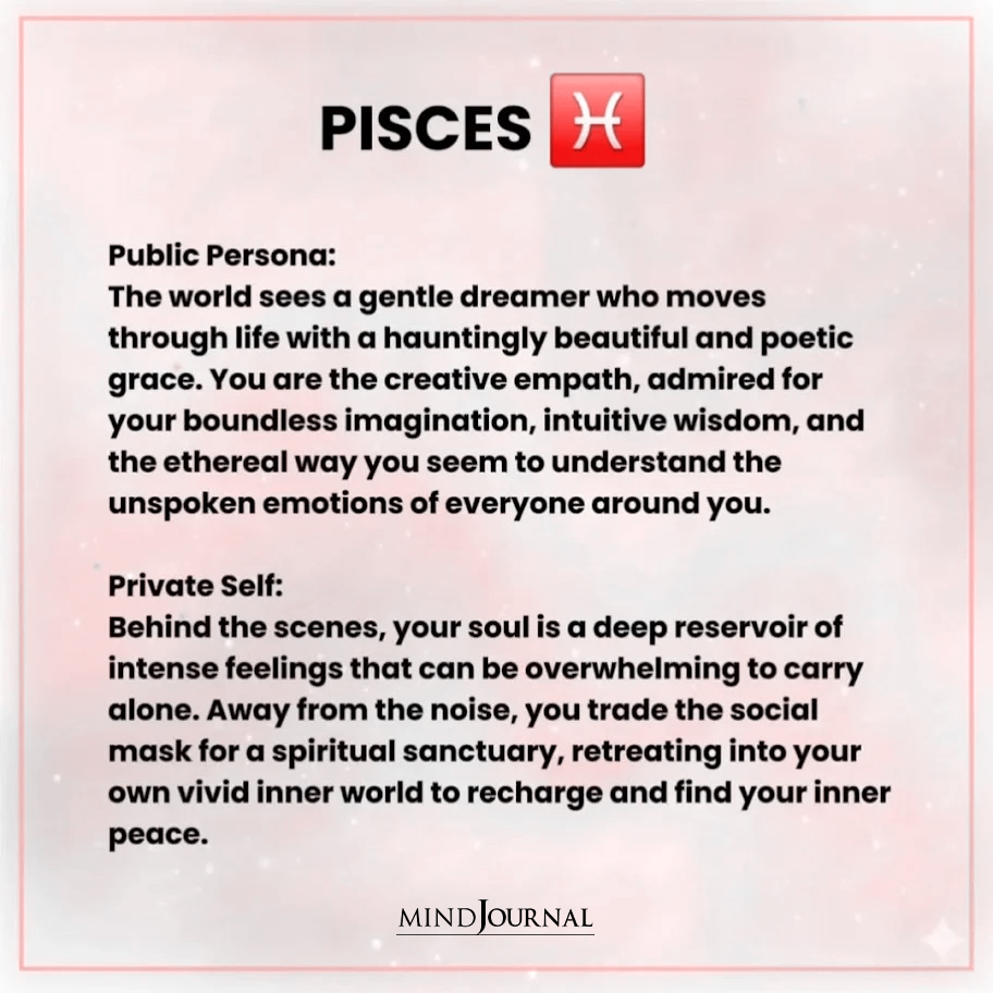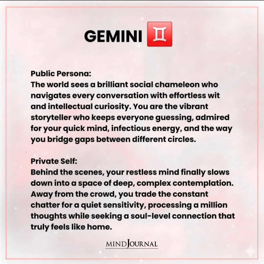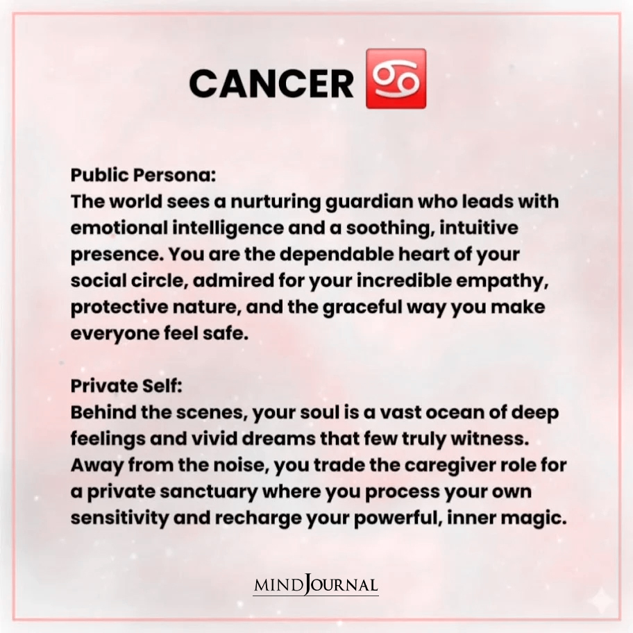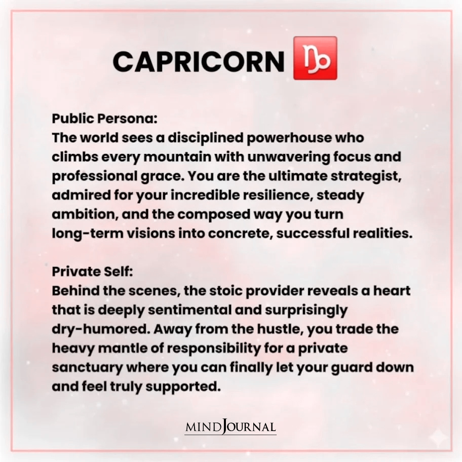 Your zodiac persona is not a contradiction. It is a reflection of how you survive, connect, and protect your emotional world. The version of you the world sees exists for a reason, just as the quieter self you guard so carefully does. When you begin to understand both sides, you stop feeling divided and start feeling whole. Because the most authentic version of you is not just who you appear to be, but also who you are when no one is watching.