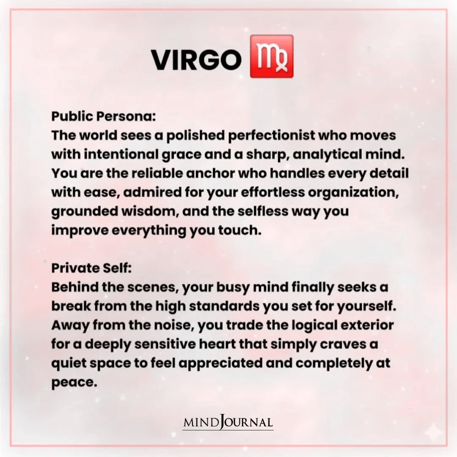 We all wear a version of ourselves for the world to see. The confident face. The calm one. The strong one. But beneath that private persona lives a much quieter, more personal self that only a few ever see. Astrology captures this contrast beautifully. Your zodiac sign reveals not just how people perceive you, but also who you become when the noise fades and you are finally alone with yourself.