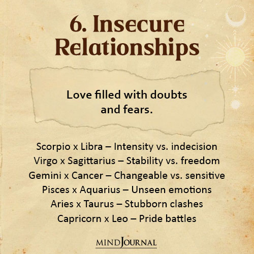 These bonds are shaky because they bring out each otherโs doubts, jealousy, or fears.