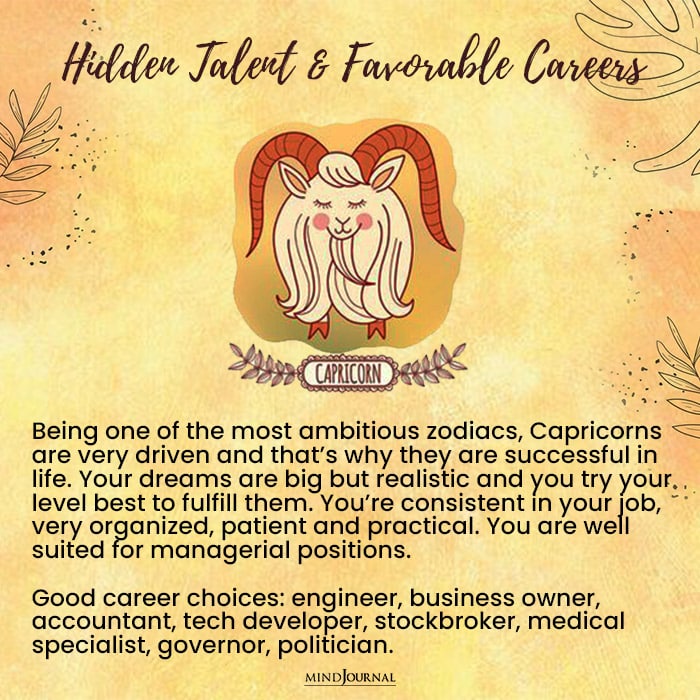 According to Capricorn hidden talents, you value hard work and loyalty above all else, and colleagues who show these qualities are the people you keep close to you even if they’re intellectually inferior.