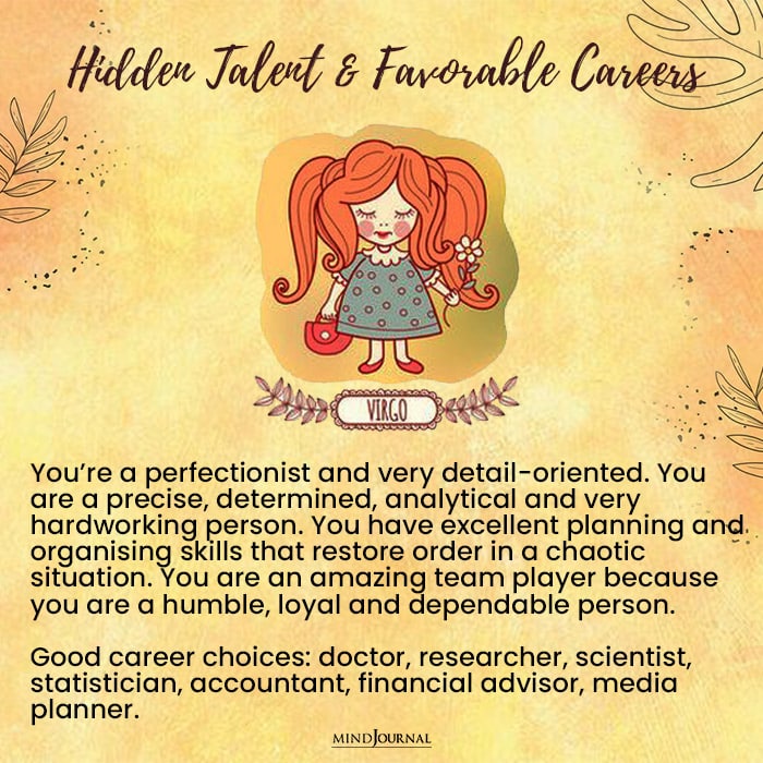 According to the hidden talent of Virgos, you need to be stimulated intellectually, you enjoy the mental stimulation. You have excellent planning and organizing skills that restore order in a chaotic situation. You like to plan everything in advance.
