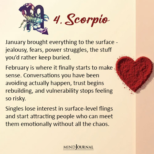 However, February delivers the breakthrough. With Venus activating your emotional foundation zone, Scorpio enters a healing phase that feels almost therapeutic.
