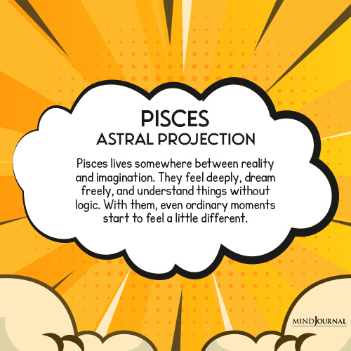 Not literally leaving their body, but mentally drifting far beyond ordinary reality. Pisces often lives partly in dreams, creativity, and intuition. They pick up on moods and feelings around them very easily.
