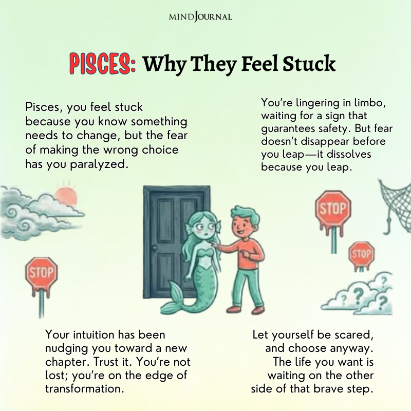 Pisces lives in possibilities. They daydream about a life that thrives only in their imagination. They imagine, create, and dream, but when it comes to taking action, something holds them back. They feel stuck in a quiet, persistent doubt: What if it doesn’t work? What if they’re not enough? What if reality doesn’t match their dream?