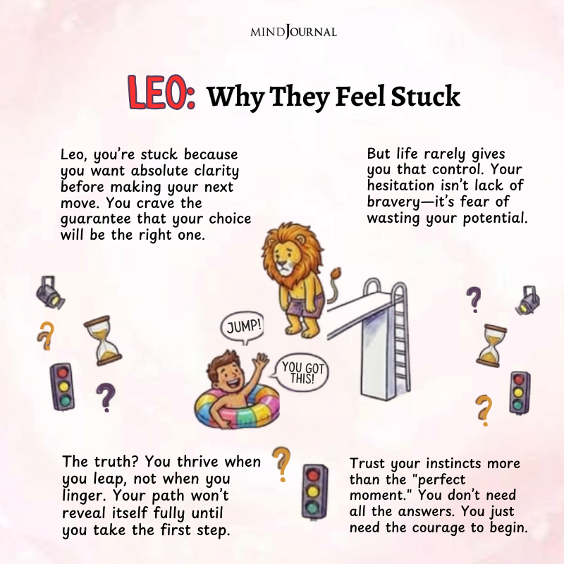 Leos have vision, talent, and a presence that instantly lights up the room. But somewhere along the way, the approval of others became the gas in their engine. The feeling stuck experience for Leo is rooted in external validation. When their efforts go unnoticed, they start to feel invisible. And that’s where the stuck feeling creeps in.