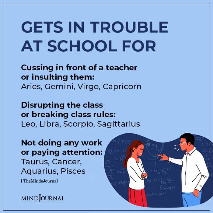 Cussing in front of a teacher or insulting them: Aries, Gemini, Virgo, Capricorn