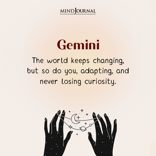 Gemini energy is all about adaptability and curiosity. People misunderstand your need for change, but that’s just how your zodiac mindset works, you need variety and freedom to thrive. You’re constantly evolving, and you hate feeling trapped.