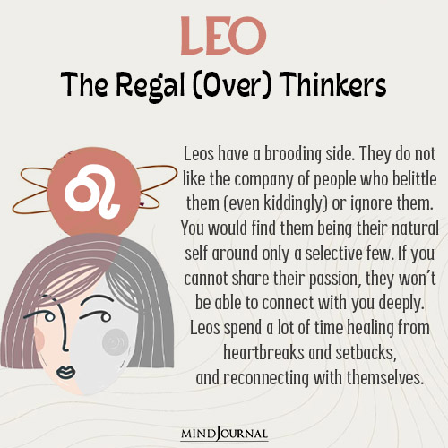 Furthermore, they are natural leaders who take their work and creative pursuits seriously. If you cannot share their passion, they won’t be able to connect with you deeply. Leos spend a lot of time healing from heartbreaks and setbacks, and reconnecting with themselves.