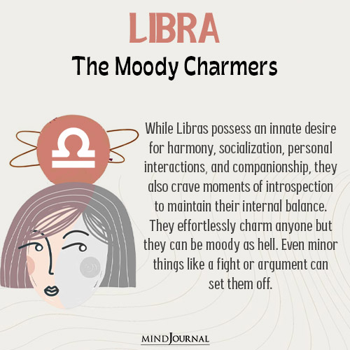 Through their speech, fashion sense, smooth personality, softness, knowledge, or creative talents they effortlessly charm anyone but they can be moody as hell. Even minor things like a fight or argument can set them off. They toggle between compromise as an extroverted art and self-reflective introversion.