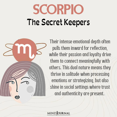 Scorpios may appear silent, stoic, and even reserved to some and jovial, adventurous, and generous to others. It depends on the level of access you have been granted from the. Very few people can get close to a Scorpio, like really close.