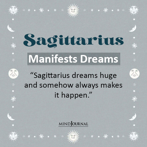 Sagittarius is one of the most naturally gifted signs best at manifesting big dreams. They understand that manifestation begins with belief, an unshakeable conviction that something more, something better, something extraordinary is possible.